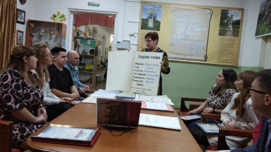 Пригласили на небольшую экскурсию по музею. На выставке «Люди дела – наши земляки», молодые труженики узнали о многих земляках, получивших государственные награды за труд для развития района и Кировской области.