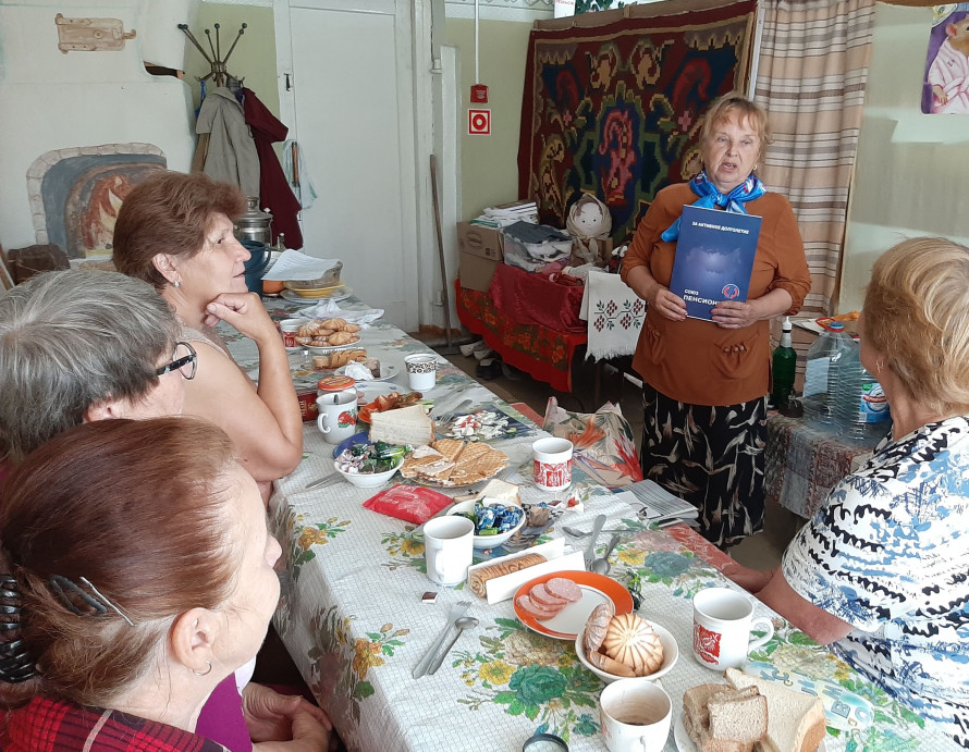 Выступила Лидия Сергеевна Бедина /председатель местного отделения по Сунскому району общероссийской общественной организации «Союз пенсионеров России»/. Она рассказала, что организация создана в целях защиты законных прав и жизненных интересов пенсионеров. Усилия районного общества направлены на то, чтобы больше представителей старшего поколения получили доступ к новым возможностям и смогли качественно улучшить свою жизнь и долголетие.