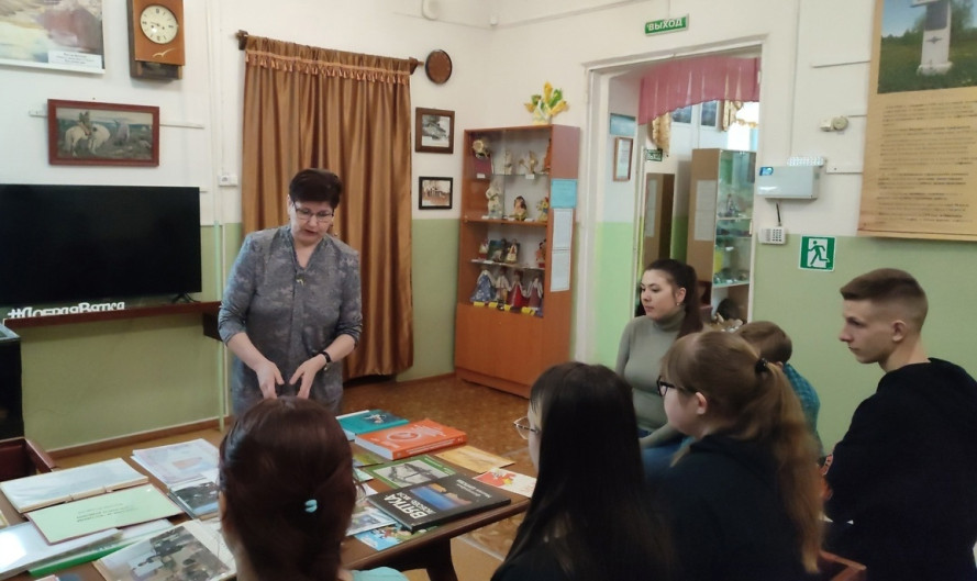 Старшеклассники собираются делать проект по истории образования и памятным местам нашего района. Одна из школьниц сразу взяла материалы для будущего проекта.
